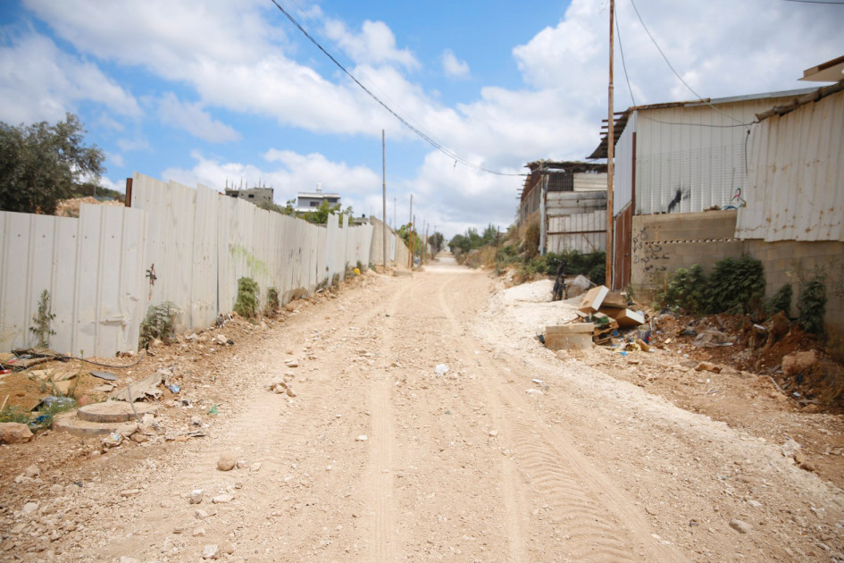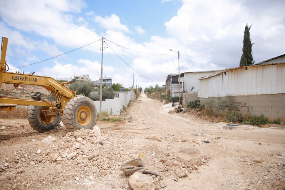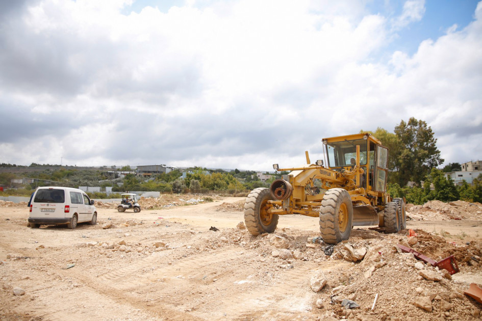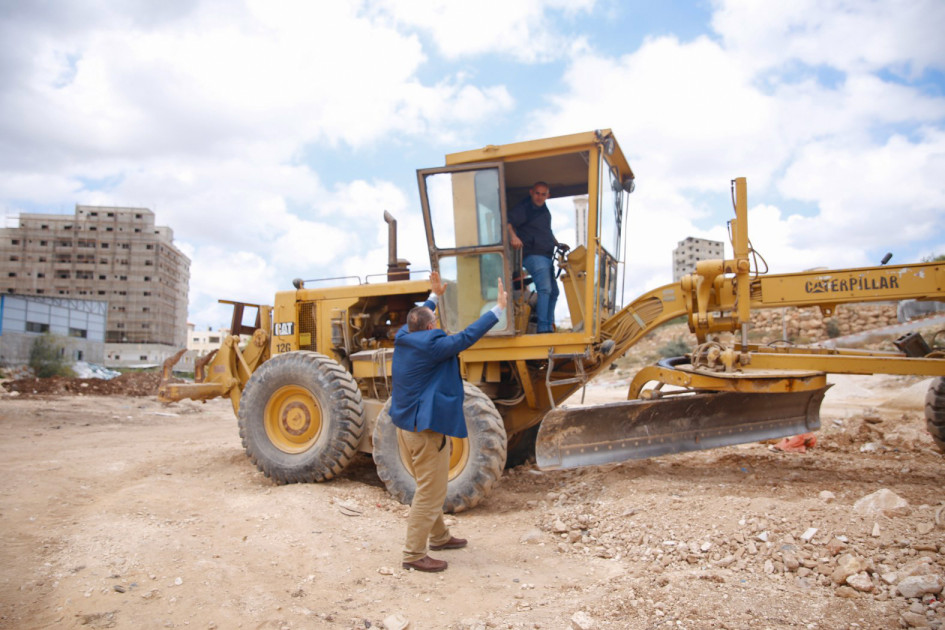 جانب من اعمال ( جريدر ) من تجهيزات دائرة الهندسة والمشاريعاستعدادا لتعبيد شارع بالقرب من كوكتيل ريفان .